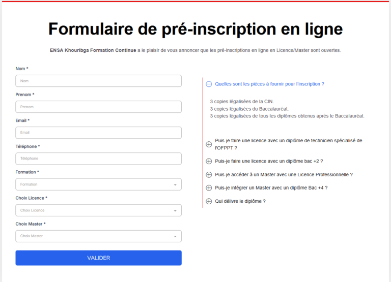 ENSA Khouribga Formation Continue (ENSAK) is the education centre of the École Nationale des Sciences Appliquées (ENSA) in Khouribga, Morocco. It specialises in professional diplomas and master’s degrees for working adults. The organisation provides a wide range of licence and master programmes—including disciplines like artificial‑intelligence engineering, software development, cybersecurity, industrial management, financial engineering and health‑information systems (ensak-formations.com). ENSA also emphasises flexible teaching modes; programmes are delivered in person, remote or hybrid, allowing professionals to study on weekends while continuing their jobs.