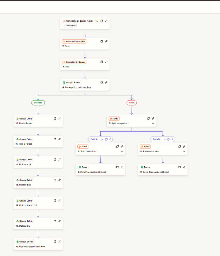 To connect the website form with other systems, Exponify used Zapier, an automation platform that acts as an AI‑orchestration layer. Zapier offers no‑, low‑ and full‑code tools that combine workflows, databases and interfaces, and provides a library of over 8,000 app integrations. In Zapier, automated workflows called Zaps are composed of a trigger (e.g., a new form submission) and one or more actions (e.g., adding a row to Google Sheets or sending an email); once published, a Zap runs the action steps whenever the trigger occurs. Exponify set up Zaps to automatically create or update records in the Google Sheets database, send confirmation emails to applicants and notify internal teams when new prospects registered. This eliminated manual data entry and ensured that all leads were captured and nurtured consistently.